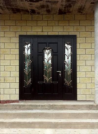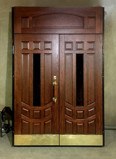 | Отделка снаружи | массив дуба с резьбой (цвет и фрезеровка на выбор) + ковка + стекло |
