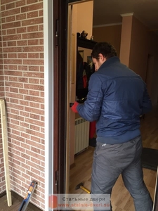 После демонтажа китайской двери специалисты компании зафиксировали в проеме новую дверь из массива и заделали швы монтажной пеной.