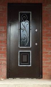 Клиент заказал входные двери с ковкой и стеклом. Специальный запрос заключался в том, чтобы изящные кованые детали совпадали по стилю с остальным металлическим декором на участке. Он выполнен в растительном орнаменте. Поэтому готовое полотно украсил оригинальный элемент с искусными завитками.